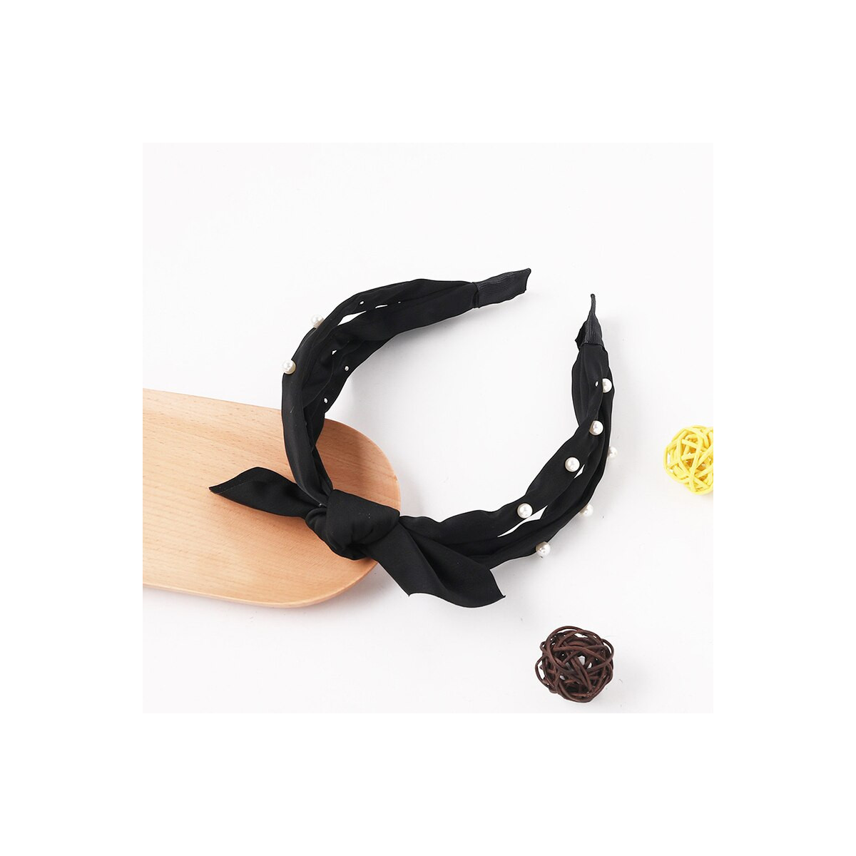 Urocza opaska w kolorze czarnym ozdobiona delikatnymi perełkami oraz kokardką sprawi, że będziesz wyglądała bardzo dziewczęco. Opaska ładnie prezentuje się zarówno z krótkimi włosami, jak i z długimi lub spiętymi.
